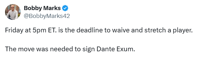 有报道称,独行侠至少需要添加一个次轮签,才有机会通过交易送走普罗斯珀,独行侠不想放弃选秀权,于是选择通过延伸条款裁掉这位年轻人,腾出薪金空间。